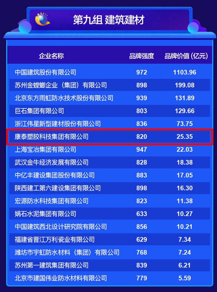 值此第四個(gè)“中國(guó)品牌日”之際,中國(guó)品牌建設(shè)促進(jìn)會(huì)貫徹習(xí)近平主席提出的“推動(dòng)中國(guó)制造向中國(guó)創(chuàng)造轉(zhuǎn)變、中國(guó)速度向中國(guó)質(zhì)量轉(zhuǎn)變、中國(guó)產(chǎn)品向中國(guó)品牌轉(zhuǎn)變”重要指示精神,在5月10日發(fā)布了“2020年中國(guó)品牌價(jià)值榜單”。榜單從企業(yè)品牌、產(chǎn)品品牌、區(qū)域品牌和自主創(chuàng)新品牌四大方面發(fā)布了多行業(yè)、多領(lǐng)域的前50排行榜。在“2020年中國(guó)品牌價(jià)值榜單”中,康泰塑膠科技集團(tuán)品牌價(jià)值為25.35億元,比2016年的13.51億元增加了11.84億元,升幅88%,再創(chuàng)新高,彰顯了“康泰”品牌的強(qiáng)度、知名度、美譽(yù)度。