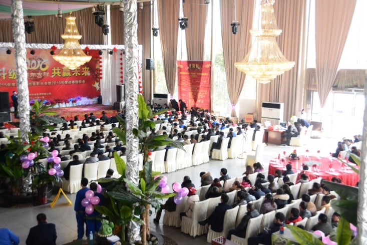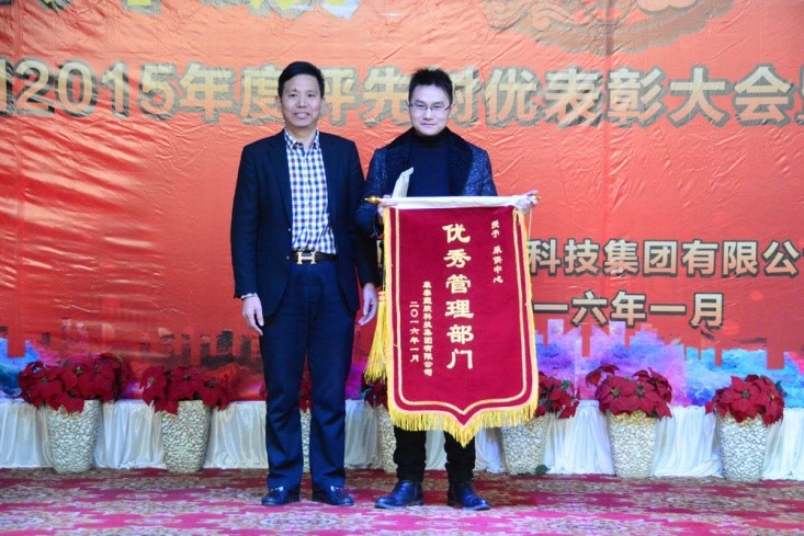 圖為林總裁在年會上為獲得優(yōu)秀管理部門頒獎