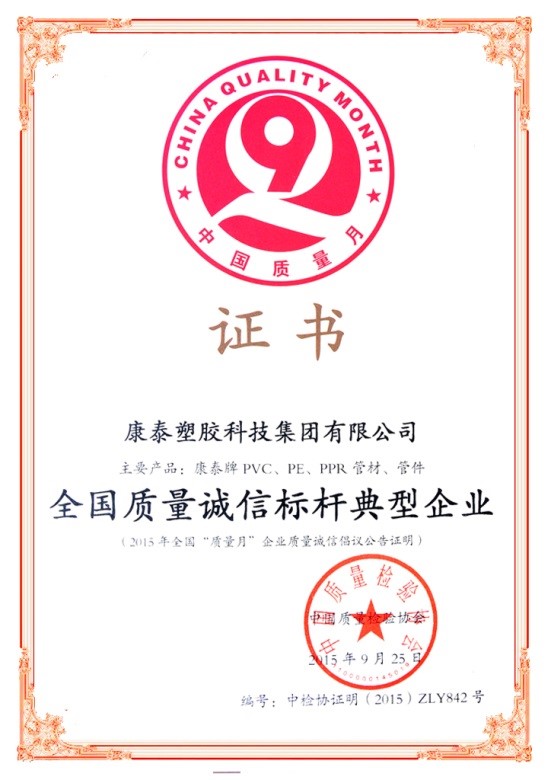 康泰獲評(píng)“全國(guó)質(zhì)量誠(chéng)信標(biāo)桿典型企業(yè)”