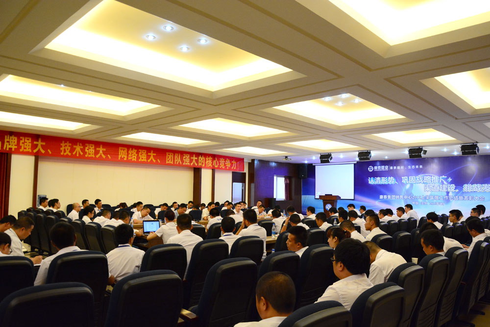 ?????? 7月11日—12日,以“認清形勢、鞏固戰(zhàn)略推廣+渠道建設(shè)、挑戰(zhàn)發(fā)展”為主題的康泰集團銷售中心2015年半年度工作總結(jié)暨表彰大會在集團總部召開。集團董事長兼總裁林云青以及公司各中心總監(jiān)出席會議,全國各辦事處、商務(wù)部的銷售精英參加了會議。
