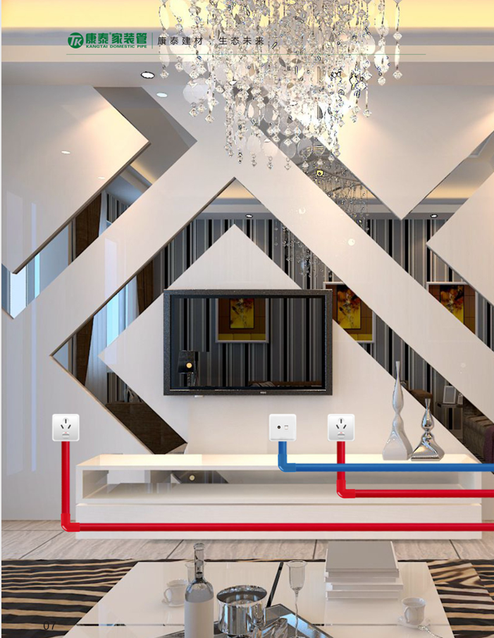 康泰家裝紅藍(lán)阻燃絕緣電工套管?chē)?yán)格執(zhí)行國(guó)家建設(shè)部門(mén)行業(yè)標(biāo)準(zhǔn)JG3050-1998《建筑用絕緣電工套管及配件》,采用“強(qiáng)電用紅管,弱電用藍(lán)管”的穿線(xiàn)管道設(shè)計(jì),方便分清電壓強(qiáng)弱,避免電磁干擾,影響通行。