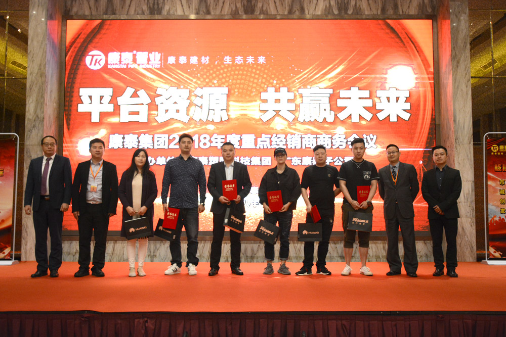 永順縣溪州廣源商貿(mào)有限公司、上海千族建材有限公司、南京源知來貿(mào)易有限公司、洛陽 葉玲、新鄭 丁秋云、吉林臺塑建材有限公司榮獲康泰集團“2017年度新經(jīng)銷商成長獎”。