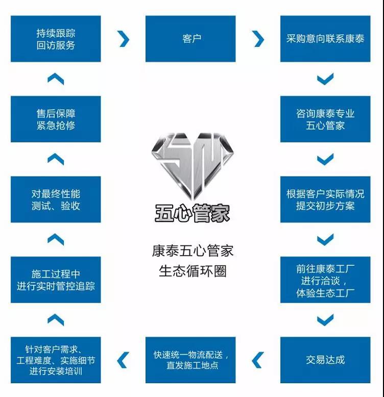 電工管道除安全質(zhì)量需要嚴格把關(guān)外,產(chǎn)品售后也是一大重點。良好的售后不僅能為安全增添一層保護膜,更能為家庭生活免去了安裝后的種種擔憂。因此,康泰塑膠為完善產(chǎn)品系統(tǒng)特意推出一站式服務(wù)“五心管家”,他們投入大量資源建立了一套健全完善的售后服務(wù)體系,不僅做到在產(chǎn)品質(zhì)量上嚴格篩選讓客戶放心外,在售后的回訪、服務(wù)中也以最大可能性避免安全隱患,讓客戶安心??堤漠a(chǎn)品的購買、實地安裝和售后都極具專業(yè)化的為用戶提供了全程的服務(wù)支持,他們的每一個步驟都以用戶為中心,為客戶爭取利益最大化。這樣的措施不但建立了與消費者之間溝通的橋梁,也增強了與用戶之間的信任。