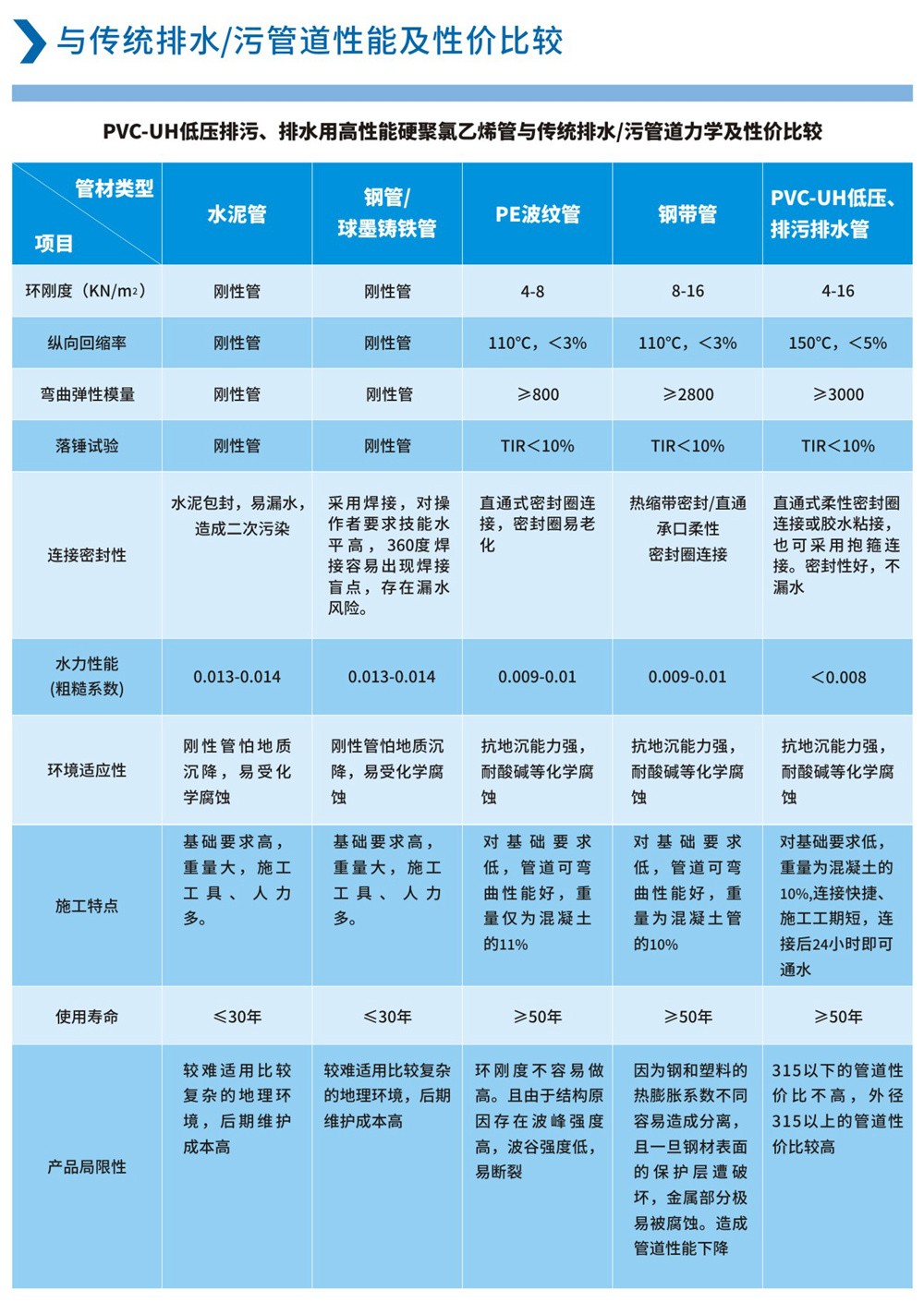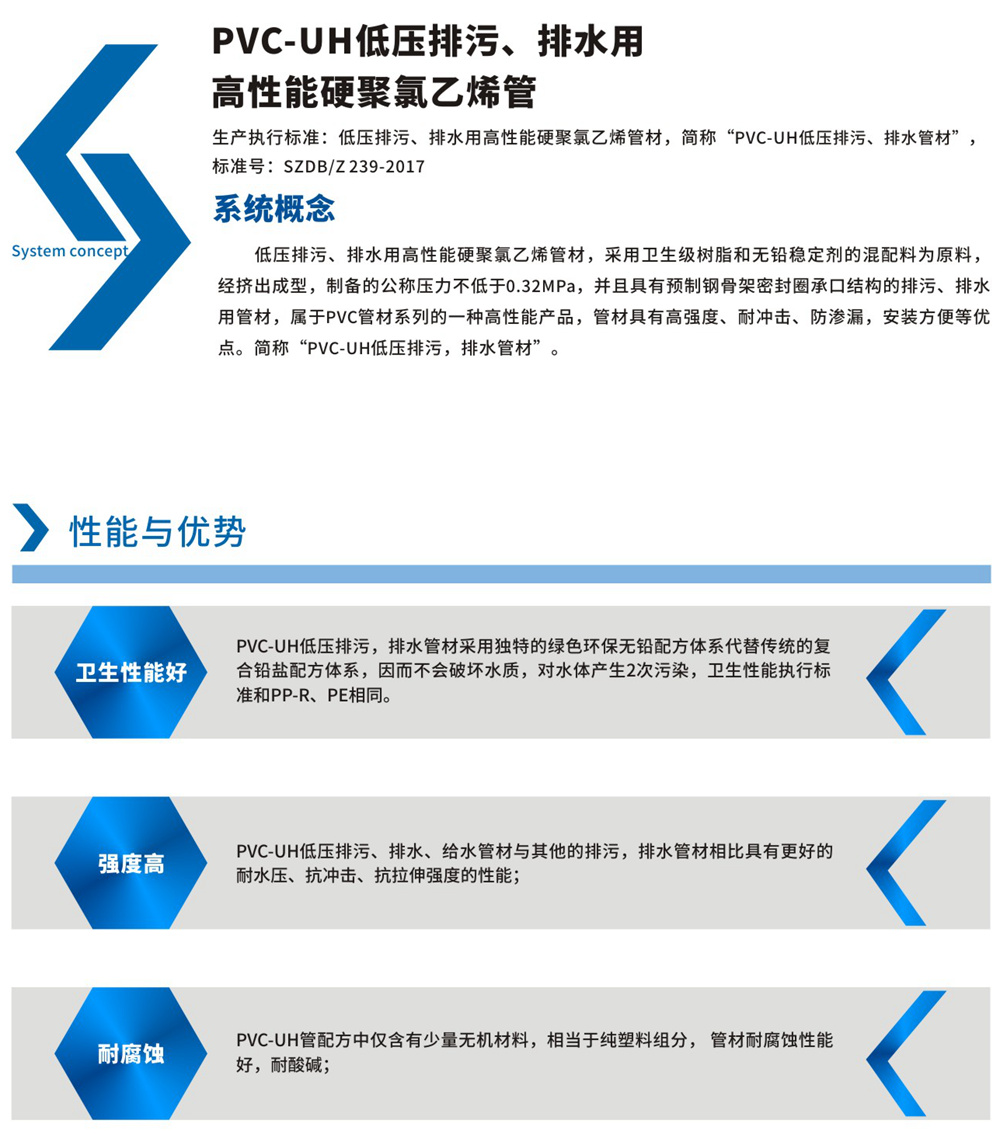 PVC-UH低壓排污、排水用高性能硬聚氯乙烯管: